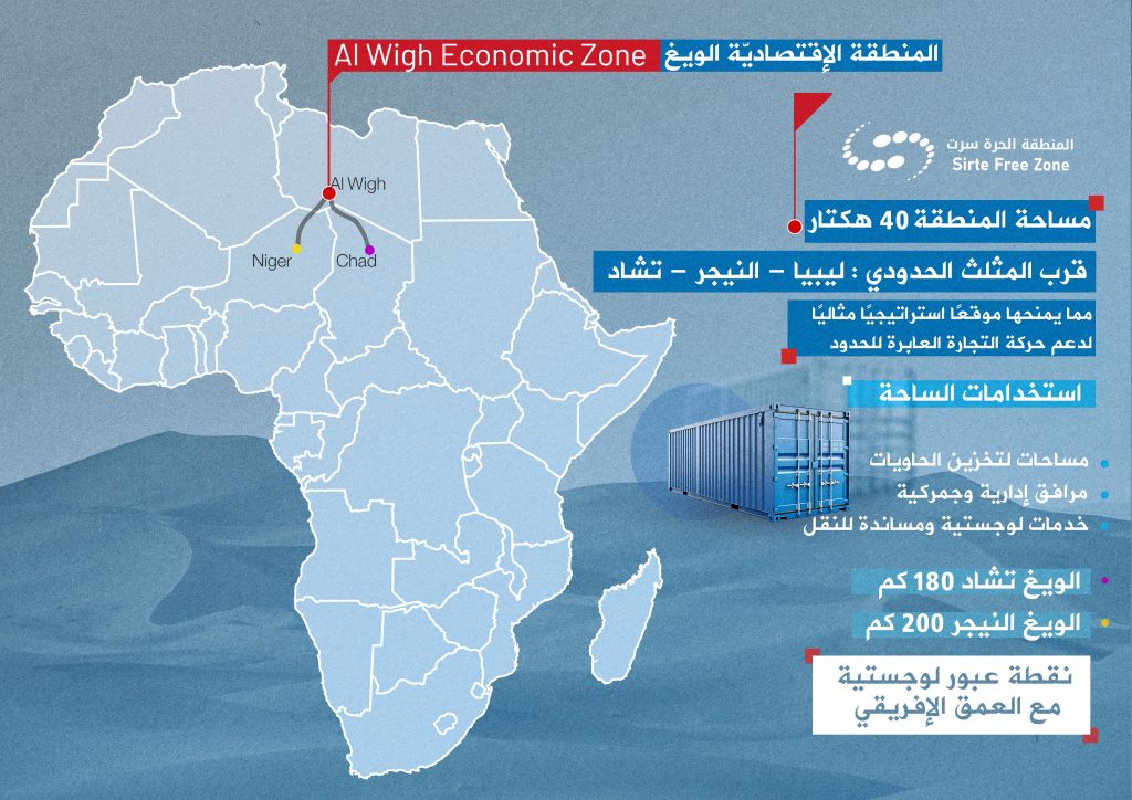 تمتد الساحة الخلفية في منطقة الوِيغ على مساحة تبلغ 40 هكتارًا في جنوب ليبيا، وتُعد الامتداد البري للمنطقة الحرة سرت نحو العمق الإفريقي. تقع الساحة بالقرب من مطار الوِيغ، وعلى مسافة قصيرة من الحدود مع كلٍّ من النيجر وتشاد، مما يمنحها موقعًا استراتيجيًا مثاليًا لدعم حركة التجارة العابرة للحدود.