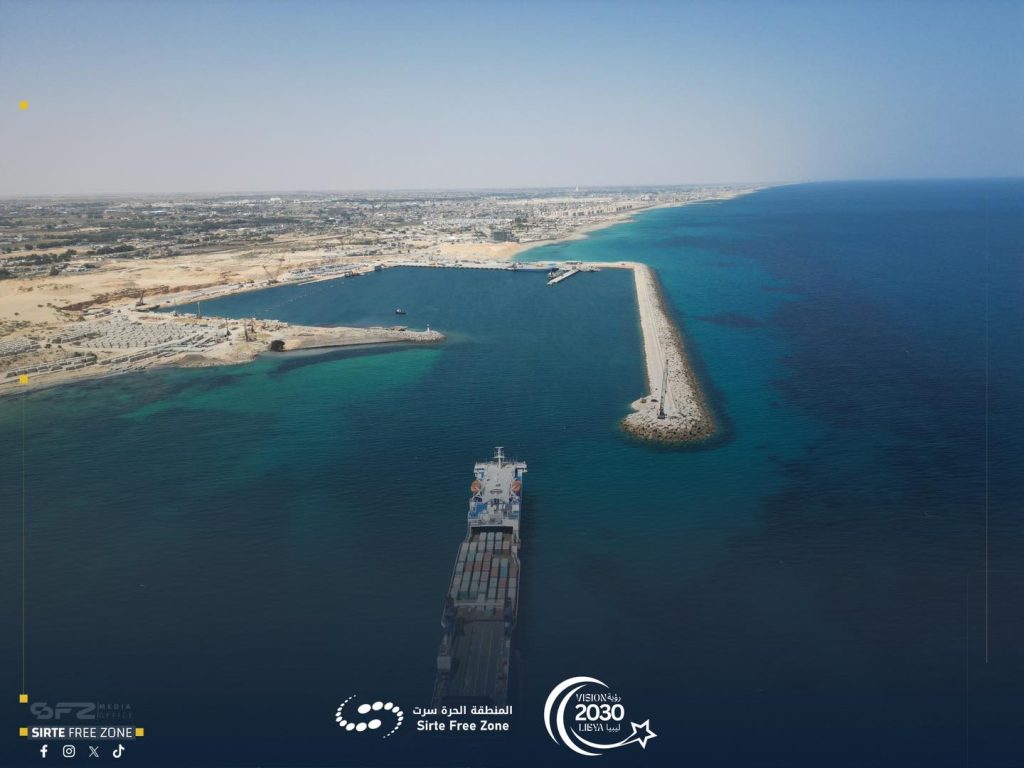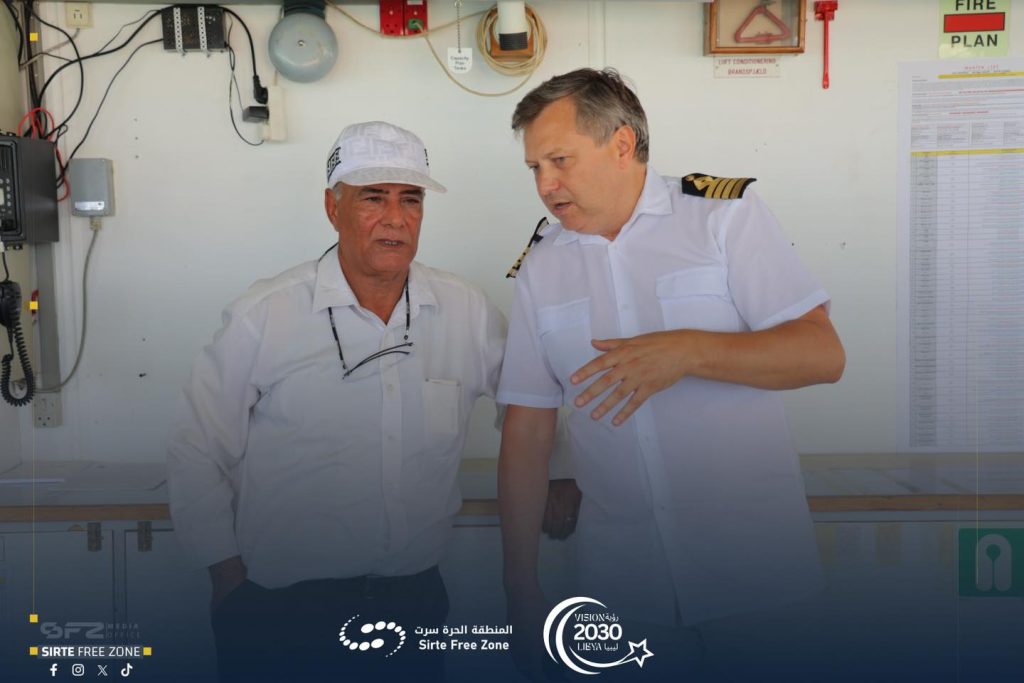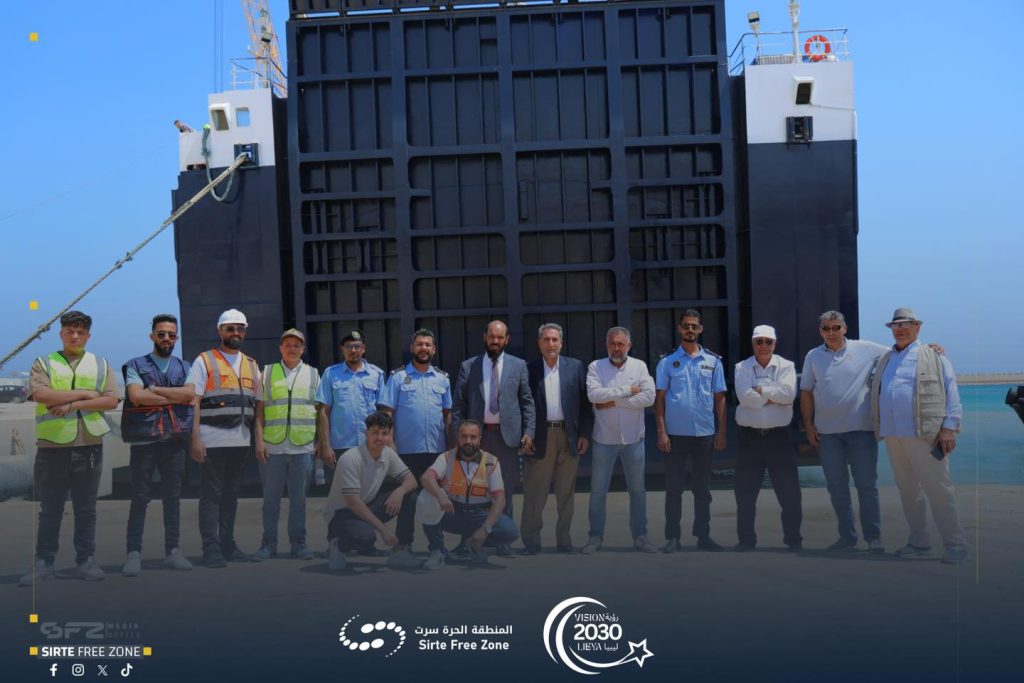 It is noteworthy that the Sirte Free Zone port dock currently includes three ships at the same time. Yesterday morning, the port received two ships, the “Mayunis” and the “Ibrahim” ship, which reflects a significant increase in commercial traffic and logistical activity at the port.